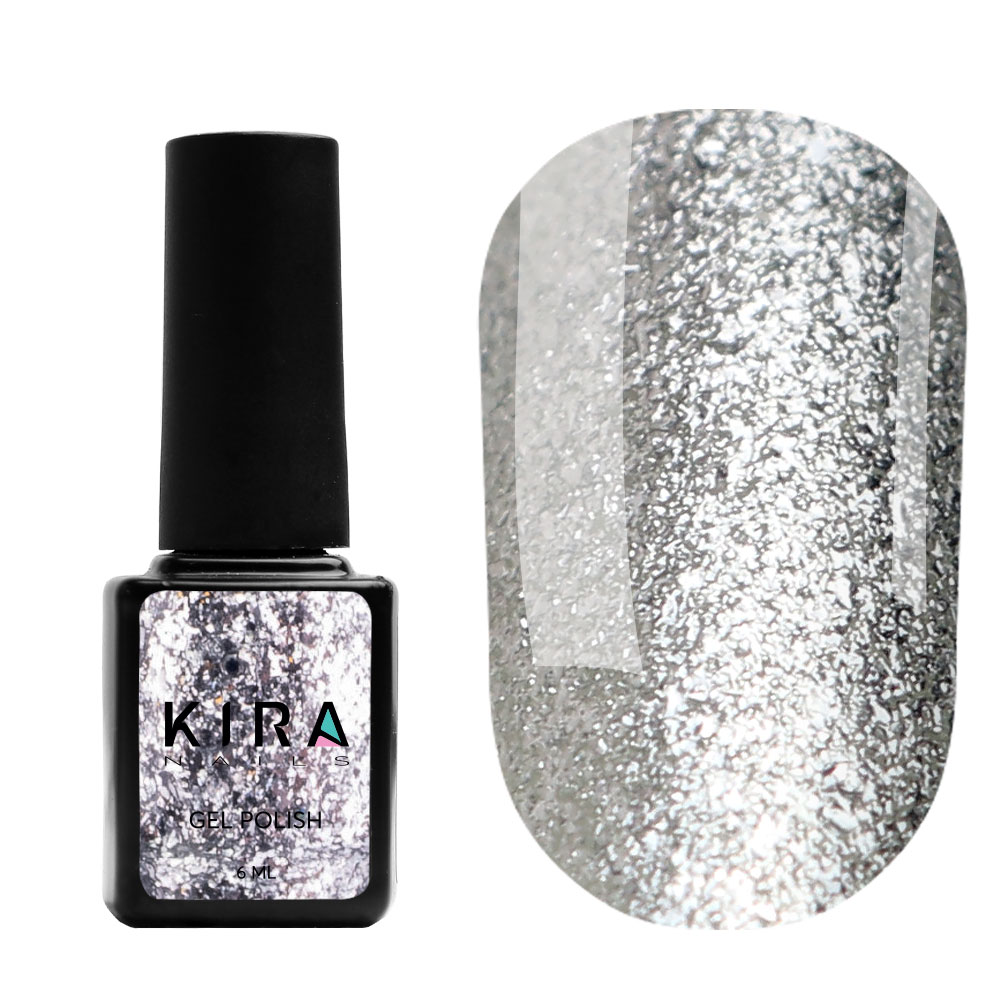 Гель-лак Kira Nails 24 Karat №001 (серебро с большим количеством блесток), 6 мл