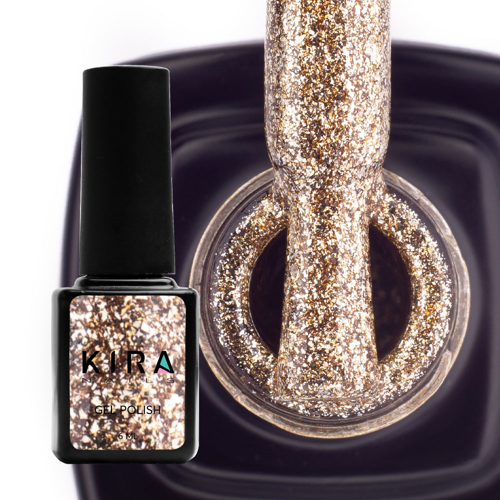 Гель-лак Kira Nails 24 Karat №005 (золото шампань с большим количеством блесток), 6 мл