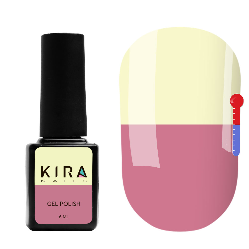 Термо гель-лак Kira Nails №T12 (чайный розовый, при нагревании желтый), 6 мл