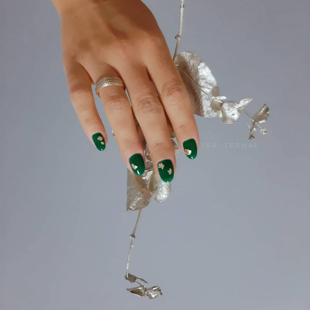 2. Дизайн с переводной фольгой – ногти выглядят очень выразительно, создается эффект венецианского стекла с мерцающими гранями, янтаря, морского дна. Хорошо сочетать с подкладкой из цветного гель-лака, лучше черного. ⠀⠀