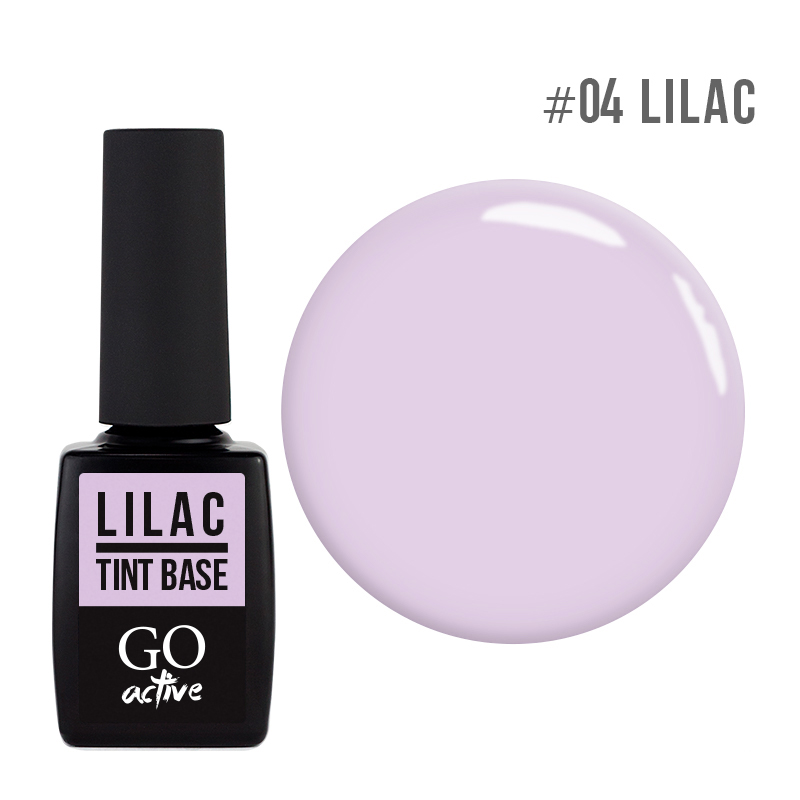 База цветная GO Active Tint Base 04 Lilac, цвет - пастельно-сиреневый, эмаль, полупрозрачный.