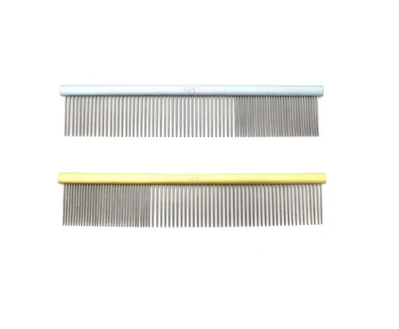 Расческа SPL Comb металлическая отлично подходит для распутывания шерсти и для удаления отмершего подшерстка как для длинной густой, так и для средней редкой шерсти. Так же подходит для поднятия шерсти при стрижке. Закругленные зубцы помогут предотвратить раздражение кожи животного. Расческа имеет комбинированные редкие и средние зубья. Рукоятка и зубья выполнены из нержавеющей стали..