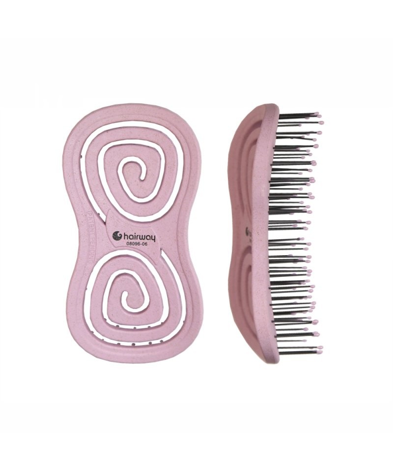 Щетка для волос Hairway Organica изготовлена из волокон пшеницы, кукурузного крахмала, маниоки и смолы. Это натуральное сырье, полностьюбиоразлагается. Нейлоновая щетина позволяет щетке бережно расчесывать волосы. Щетка имеет приятный массажный эффект и не травмирует кожу головы, легко справится смокрыми и взъерошенными волосами.
