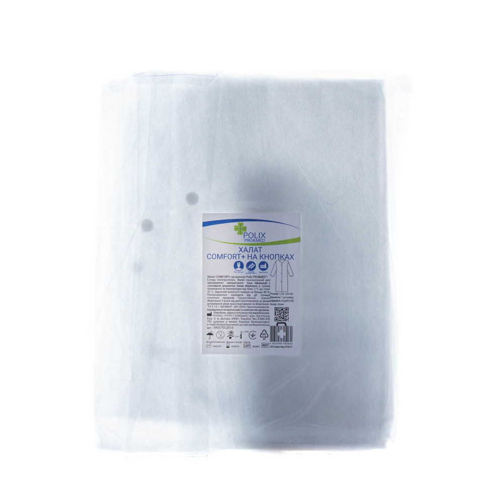 Халат одноразовый COMFORT+ на кнопках Polix Pro&Med (1 шт/пачка) L/XL белый