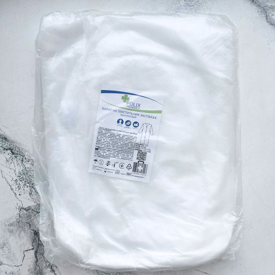 Купить Халат одноразовый на текстильных застежках Polix Pro&Med (1 шт/пачка) L/XL белый,, вы сможете в нашем интернет магазине limonad с доставкой по всей Украине в том числе и Киев, Днепр, Одесса, Харьков, Запорожье, Одесса, Львов и многие другие населенные пункты.