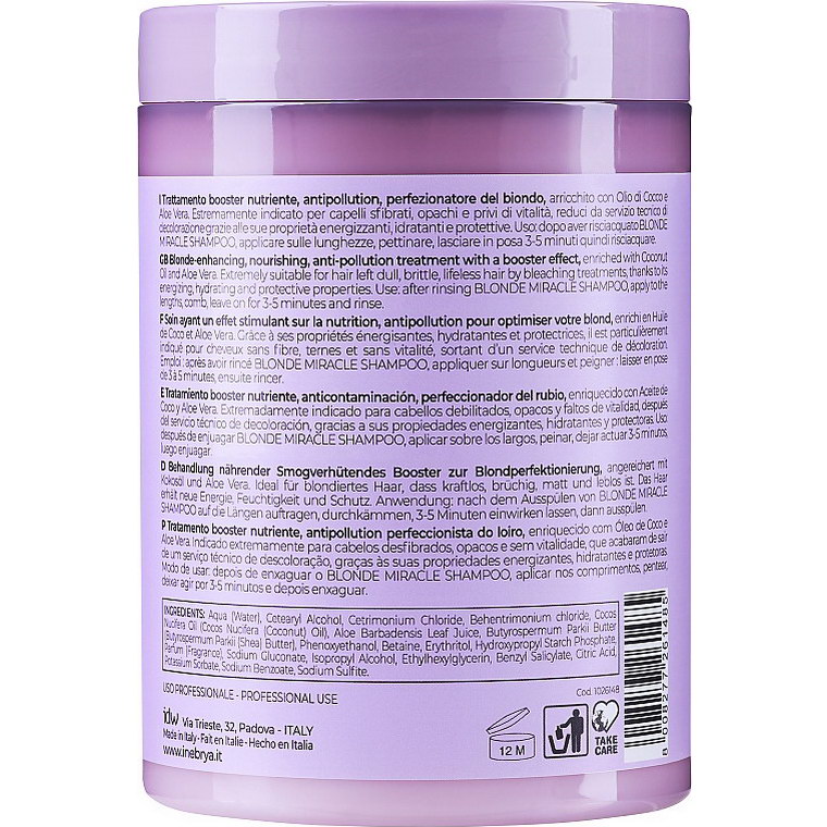 Выбрав белый стиль окраски, любая женщина должна понимать, что особенности обыденного ухода за локонами скоро кардинально поменяются. Чтобы предотвратить появление желтизны, ухудшение состояния завитков и других мелких несовершенств – обратите внимание на маску для волос оттенков «блонд» итальянского бренда Inebrya! Профессиональное средство обеспечивает качественную защиту прядям, блокируя агрессивное воздействие внешних и внутренних факторов. Помимо этого, Blondesse Blonde Miracle Nectar выгодно подчеркивает преимущества приобретенного цвета, усиливая его насыщенность, блеск, подчеркивая естественные переливы!