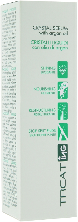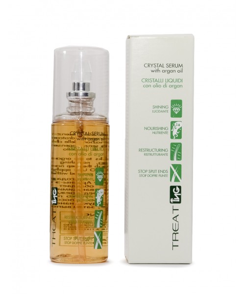 Активный компонент масла для волос Cristalli Liquidi – аргановое масло, богатое витаминами А, Е, F, полезными жирами омега 3,6 и 9, олеиновой и линолевой кислотами.