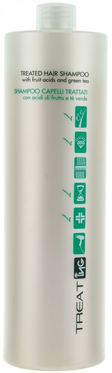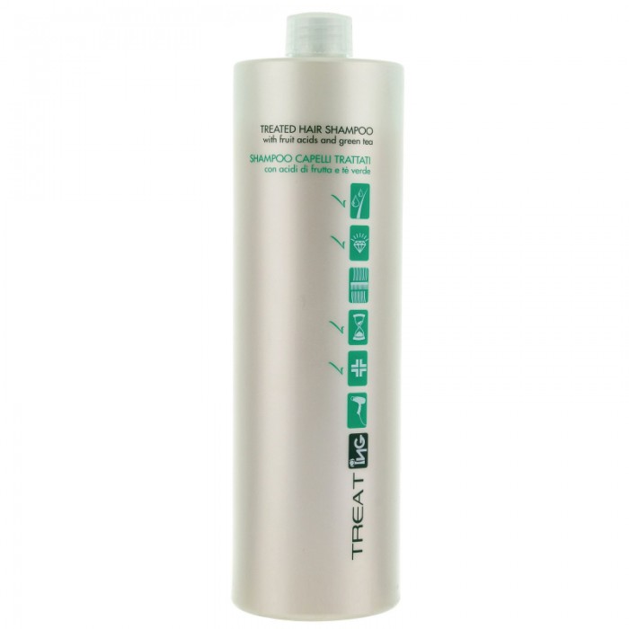 Состав Treated Hair Shampoo обогащен фруктовыми кислотами и зеленым чаем, которые обладают регенерирующим, увлажняющим, укрепляющим действием. Антиоксидантные свойства защищают от воздействия химических веществ, сохраняют молодость шевелюры и кожи головы. Локоны будут выглядеть великолепно! После регулярного использования они становятся шелковистыми, упругими и эластичными, сохраняют салонную окраску насыщенной и легко укладываются.