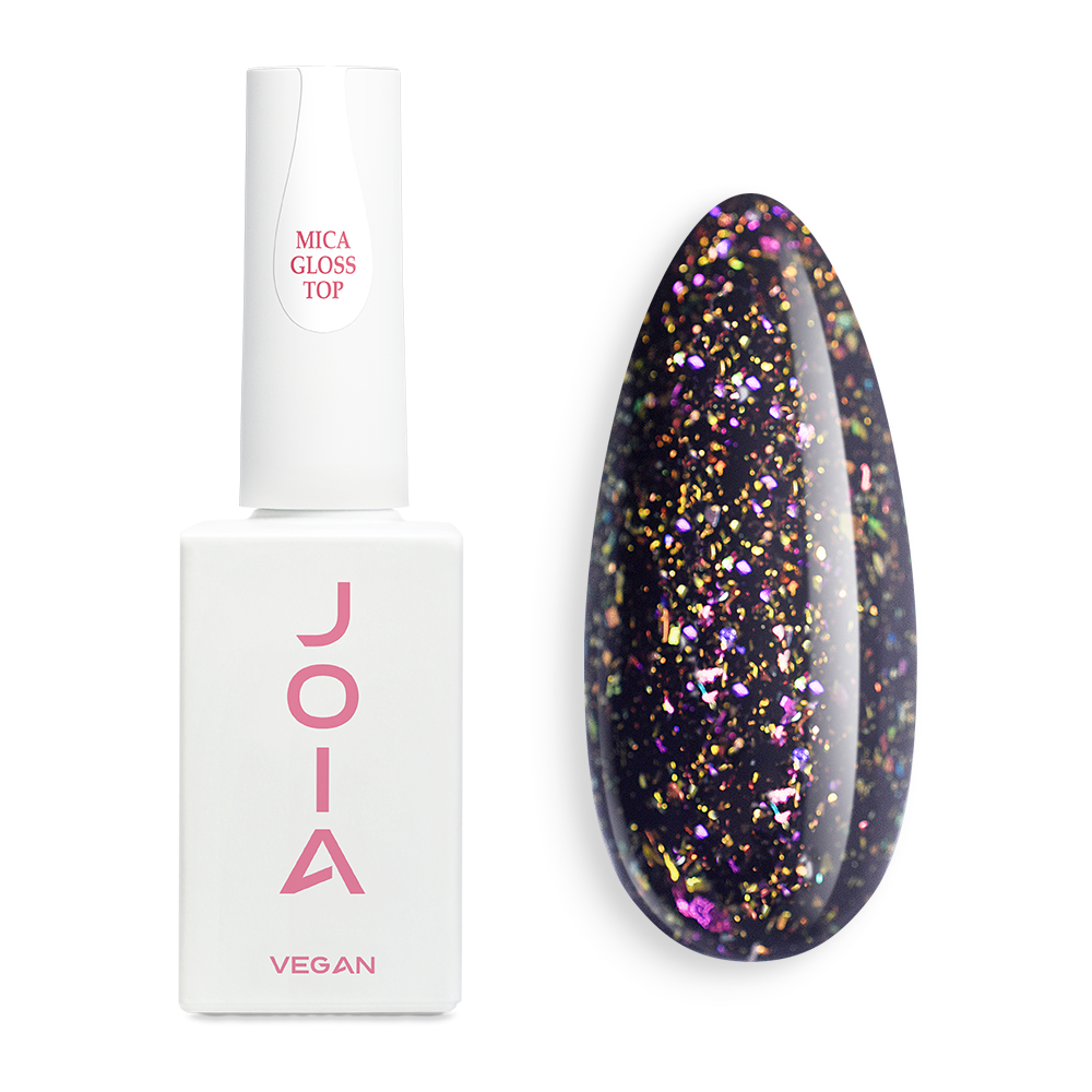 Уникальная нейл-новинка от JOIA vegan значительно ускорит процесс создания дизайна. Mica Gloss Top имеет идеальный глянец, а элементы голографической слюды с эффектом "хамелеона" преломляются под лучами света и переливаются всеми цветами радуги. Ваш маникюр будет очень эффектным. Декоративная слюда в составе топа создает роскошные перламутровые акценты и сияющие переливы.