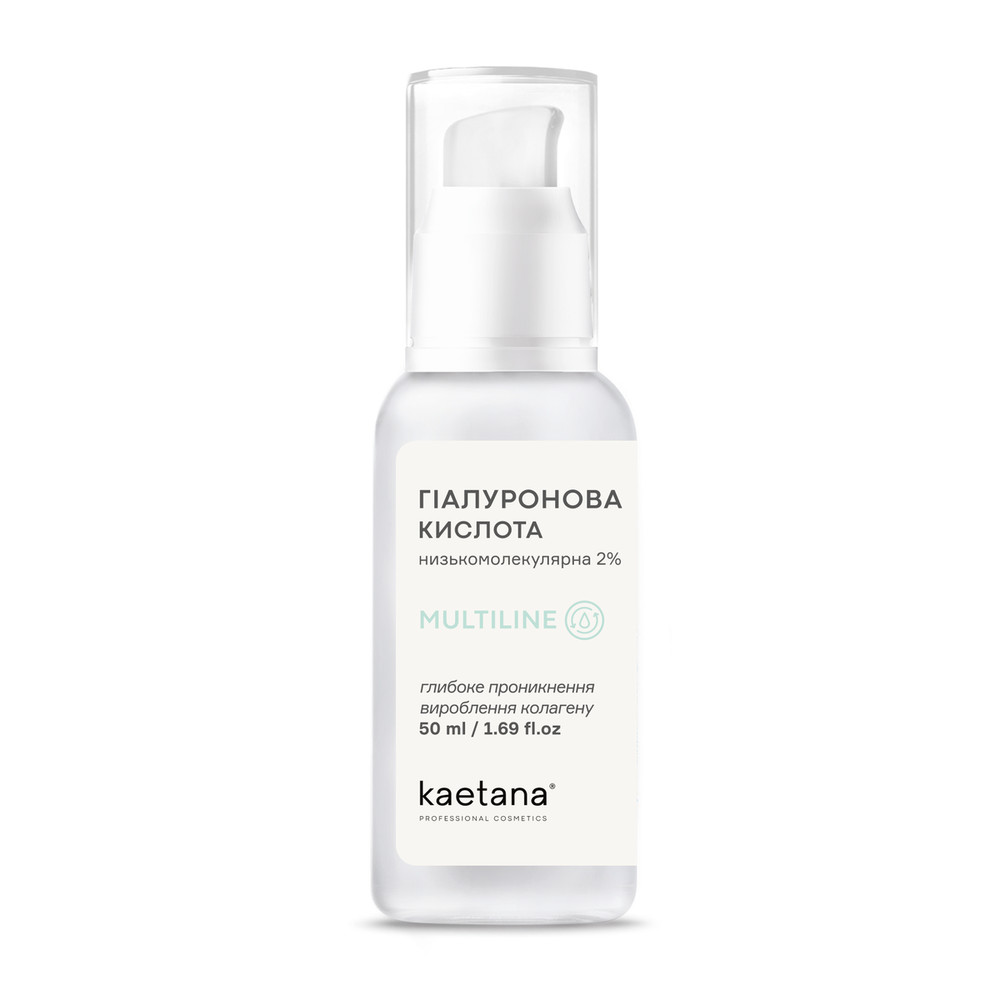 Гиалуроновая низкомолекулярная кислота 2% для лица Kaetana, глубокого проникновения, насыщает влагой, 50 мл