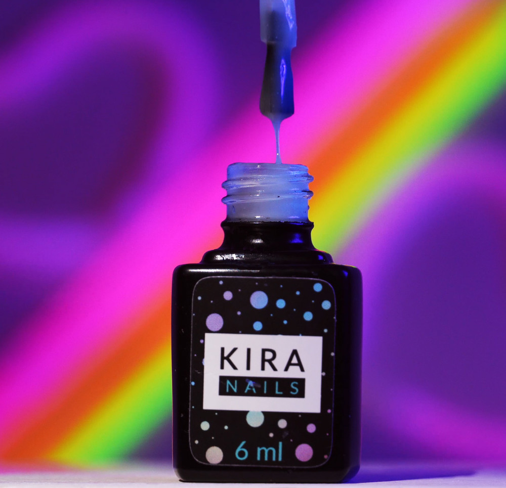Kira Nails No Wipe Fluo Top – флуоресцентный топ без липкого слоя, светящегося в темноте. Обладает небольшим оттенком желтого цвета за счет наличия флуоресцентной пудры. После остывания желтизна немного исчезнет.