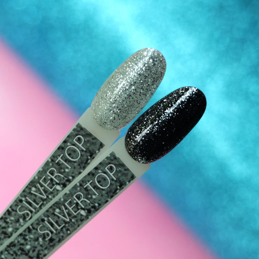 Финишное покрытие без липкого слоя с серебряным микроблеском. Придает устойчивый блеск и яркость гель-лакам. Обеспечивает защиту цветного покрытия от сколов, трещин, царапин, выгорания цвета; придает дополнительную прочность гель-лаку.