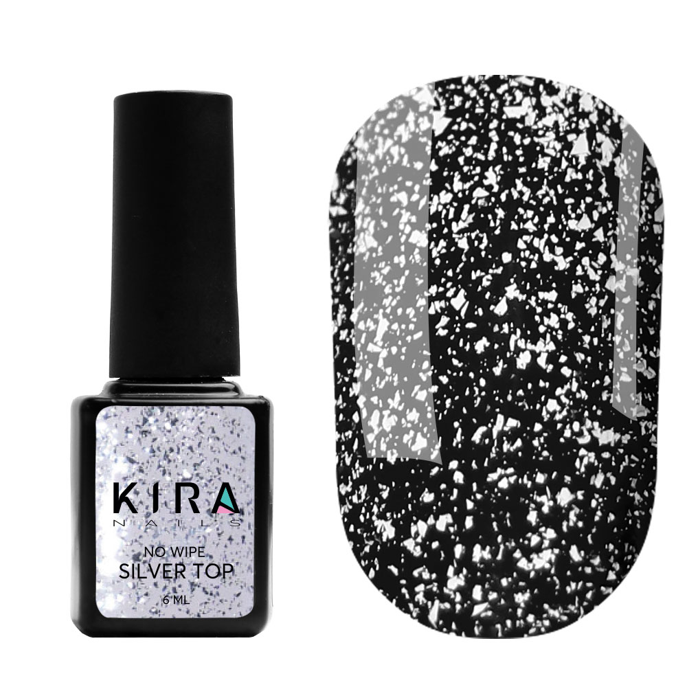 Kira Nails No Wipe Silver Top – топ без липкого слоя с серебром, 6 мл