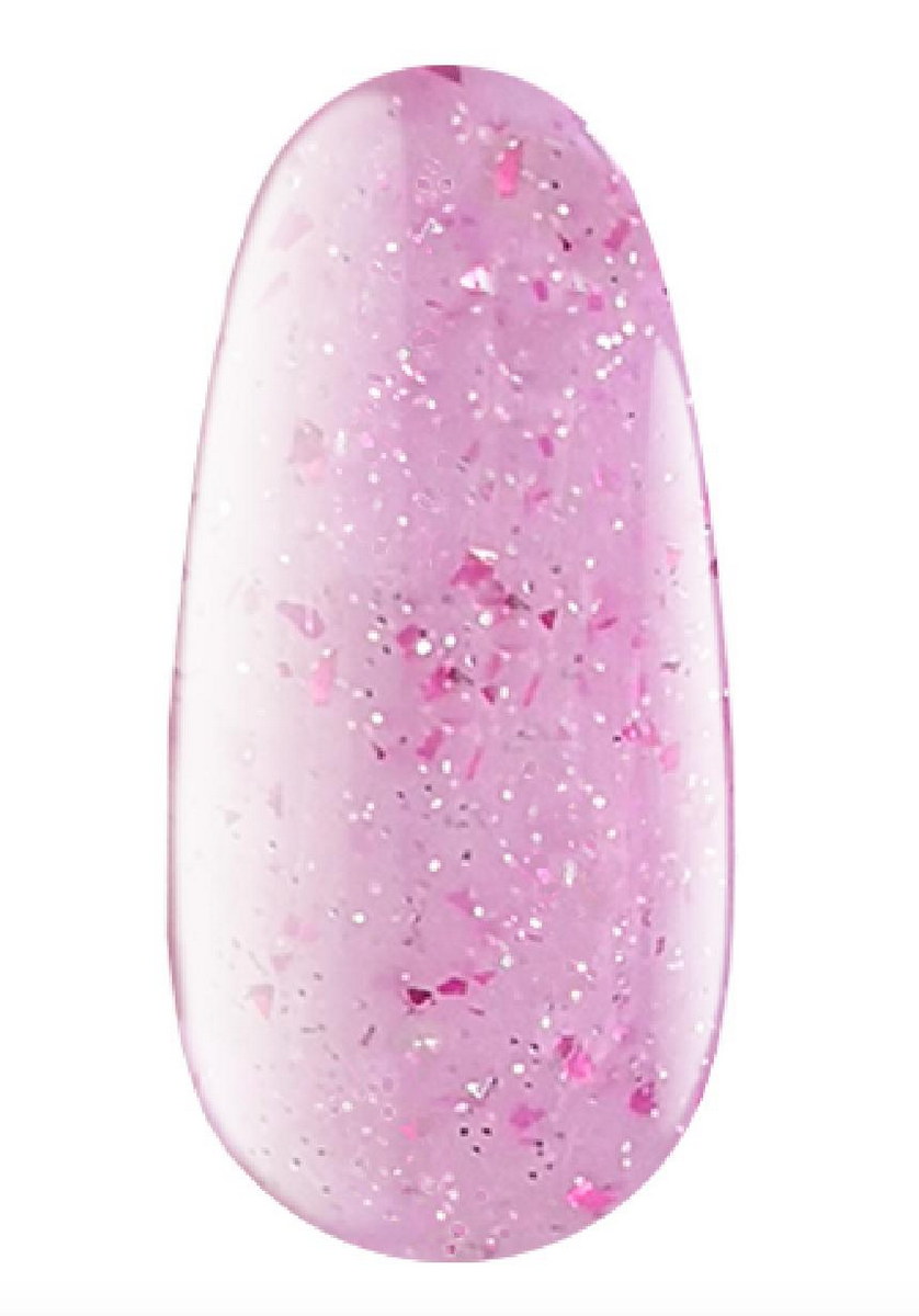 Материал можно применять не только для моделирования (в том числе верхних форм), но и для укрепления и выравнивания ногтей. Flake gel отличается средней густотой, самовыравнивается и требует минимального опиления. Он образует гладкую поверхность без наплывов. Обладает оптимальным сочетанием устойчивости и эластичности. Присутствует остаточная дисперсия. Цвет №08 – пастельно-малиновый с выраженным микроблеском в оттенке фуксия.