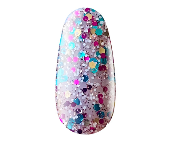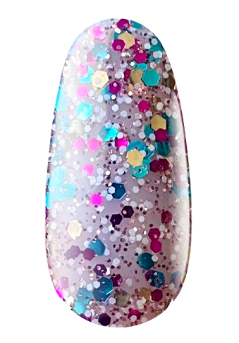 Гель-лаки этой серии легко распределяются кистью, покрывая равномерно ноготь и не растекаясь. Сбалансированная формула не создает проблем при полимеризации, гарантируя устойчивость маникюра. Оттенок № 185 SH – это насыщенный черный фон с добавлением голубого, желтого и фиолетового броката и глиттера, текстура – крем.