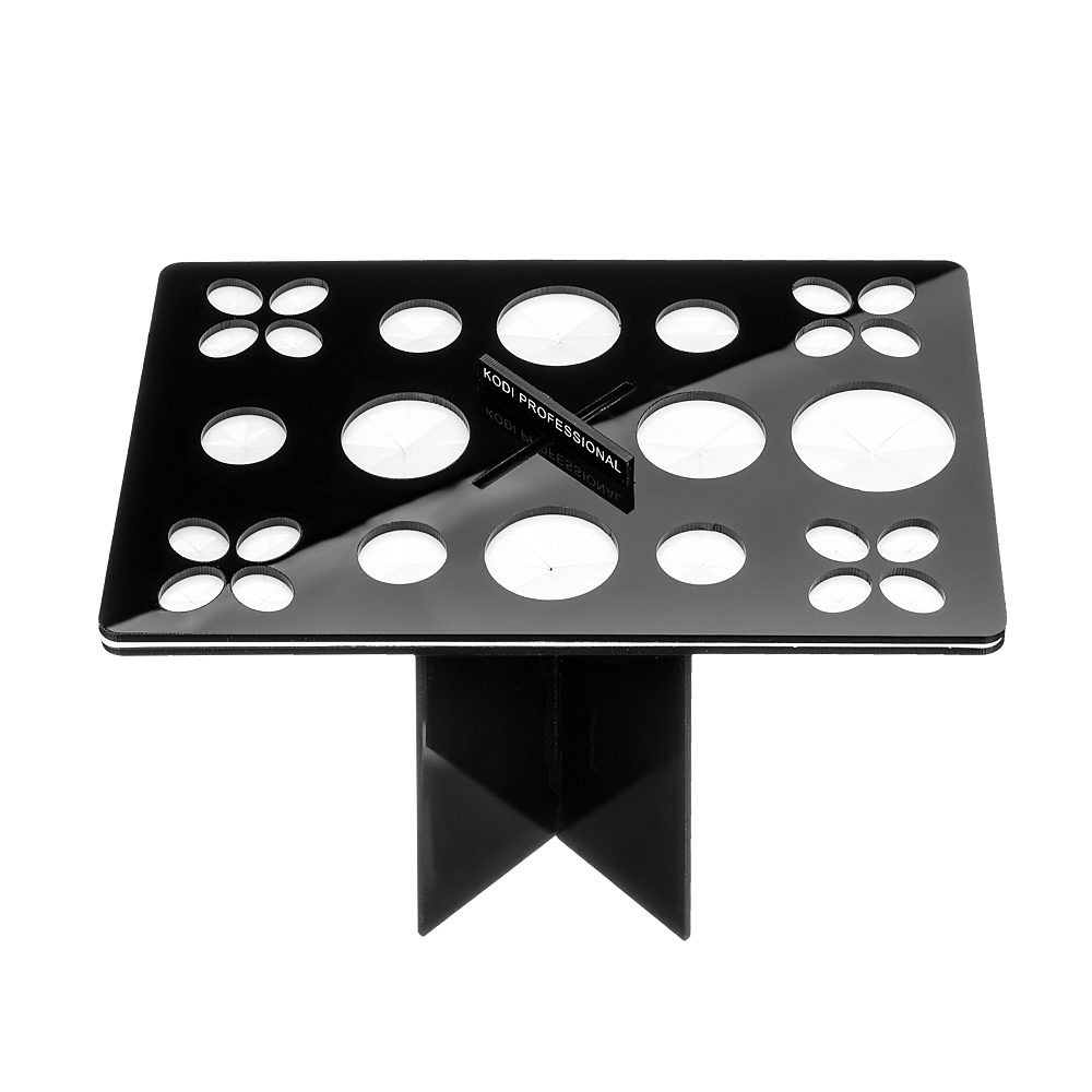 Подставка рассчитана на 26 кистей разного размера: 1 ячейка – 40 мм, 4 ячейки – 30 мм, 5 ячеек – 20 мм, 16 ячеек – 15 мм.