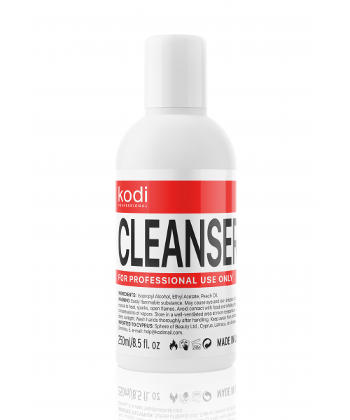 Система для выполнения гель-лакового покрытия Kodi Professional в обязательном порядке предусматривает использование средства Cleanser, задача которого в комплексе с другими препаратами обеспечить длительную носибельность гель-лака.