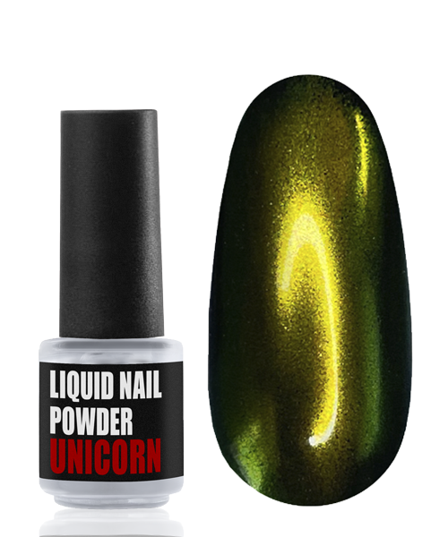 Пигмент легко и быстро набирается при помощи кисти и равномерно ложится на ногти. Жидкая консистенция мгновенно превращается в порошок, демонстрируя стойкость к царапинам и стиранию. Пигмент имеет длительный срок носки и экономный расход. При работе абсолютно отсутствует пыль на руках и поверхностях. Цвет Unicorn — сияющий цвет-единорог, демонстрирующий оттеночные трансформации радуги. Пигмент имеет эффект хамелеона, меняя свой цвет в зависимости от цвета подложки, качества освещения или угла падения света.