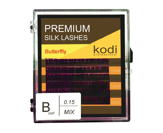 Ресницы Kodi фиолетовые B 0.15 (6 рядов: 12 мм), Butterfly