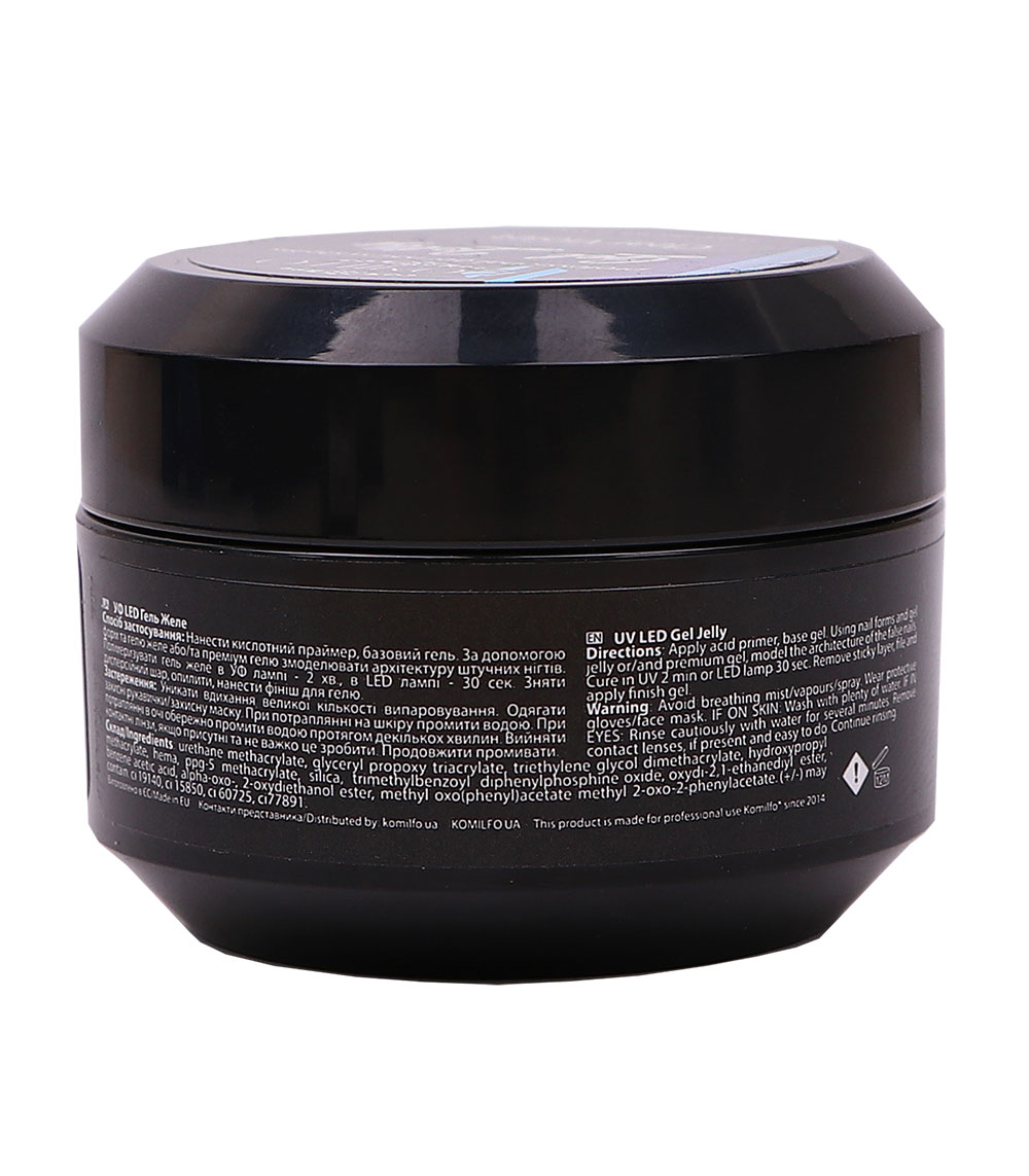 - Komilfo Gel Jelly – гель с уникальной консистенцией желе , которая не течет, при этом легко выравнивается кистью и создает идеальную архитектуру ногтя с минимальным опилением.