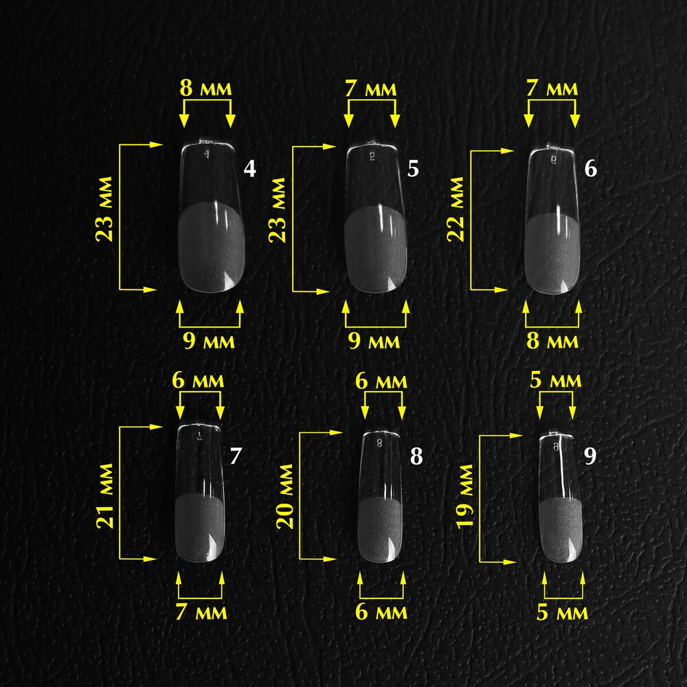 Материал форм для ногтей – PP (полипропилен), материал кончиков ногтей – PMMA (полиметилметакрилат).