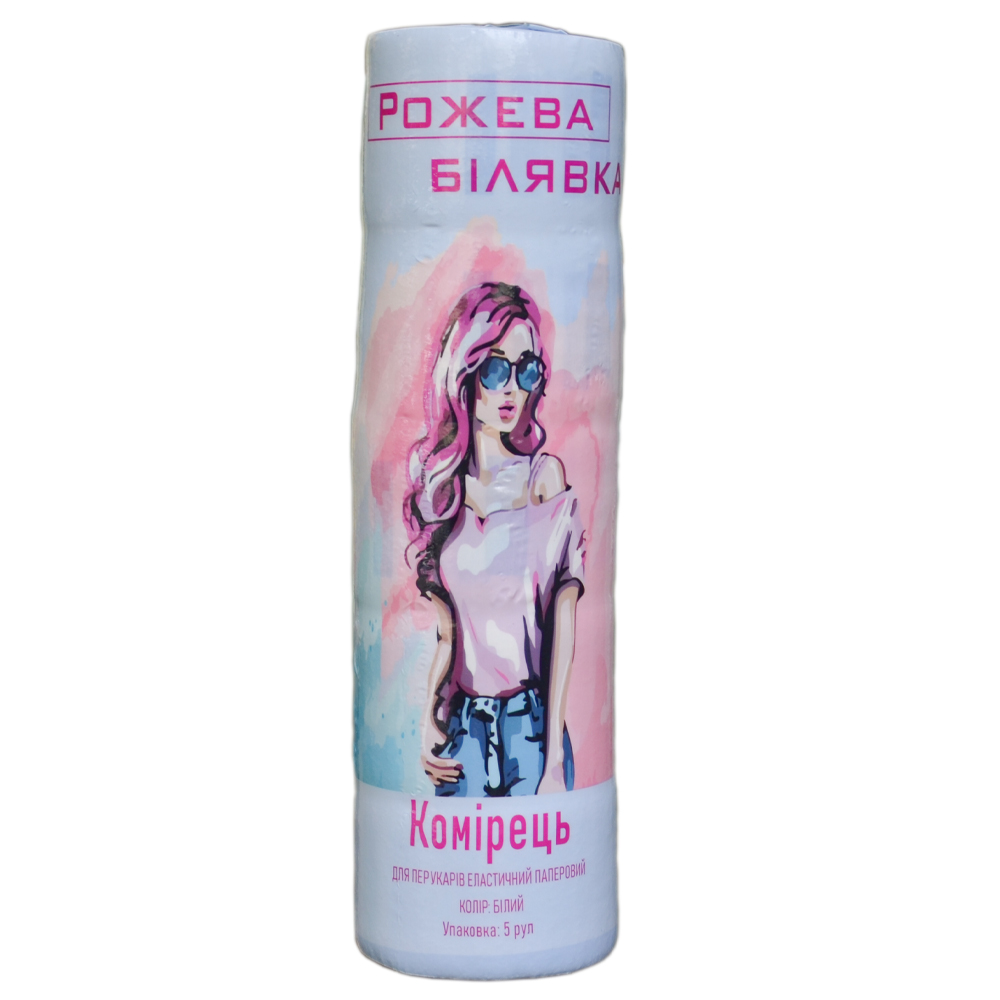 Воротник для парикмахеров эластичный Розовая Блондинка™ (5 рул/пач) бумажный, белый