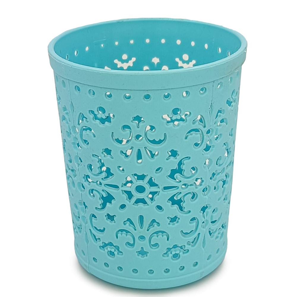Подставка стакан круглый для кисточек , пилочек и маникюрных инструментов перфорация винтаж, голубой 95x80 мм