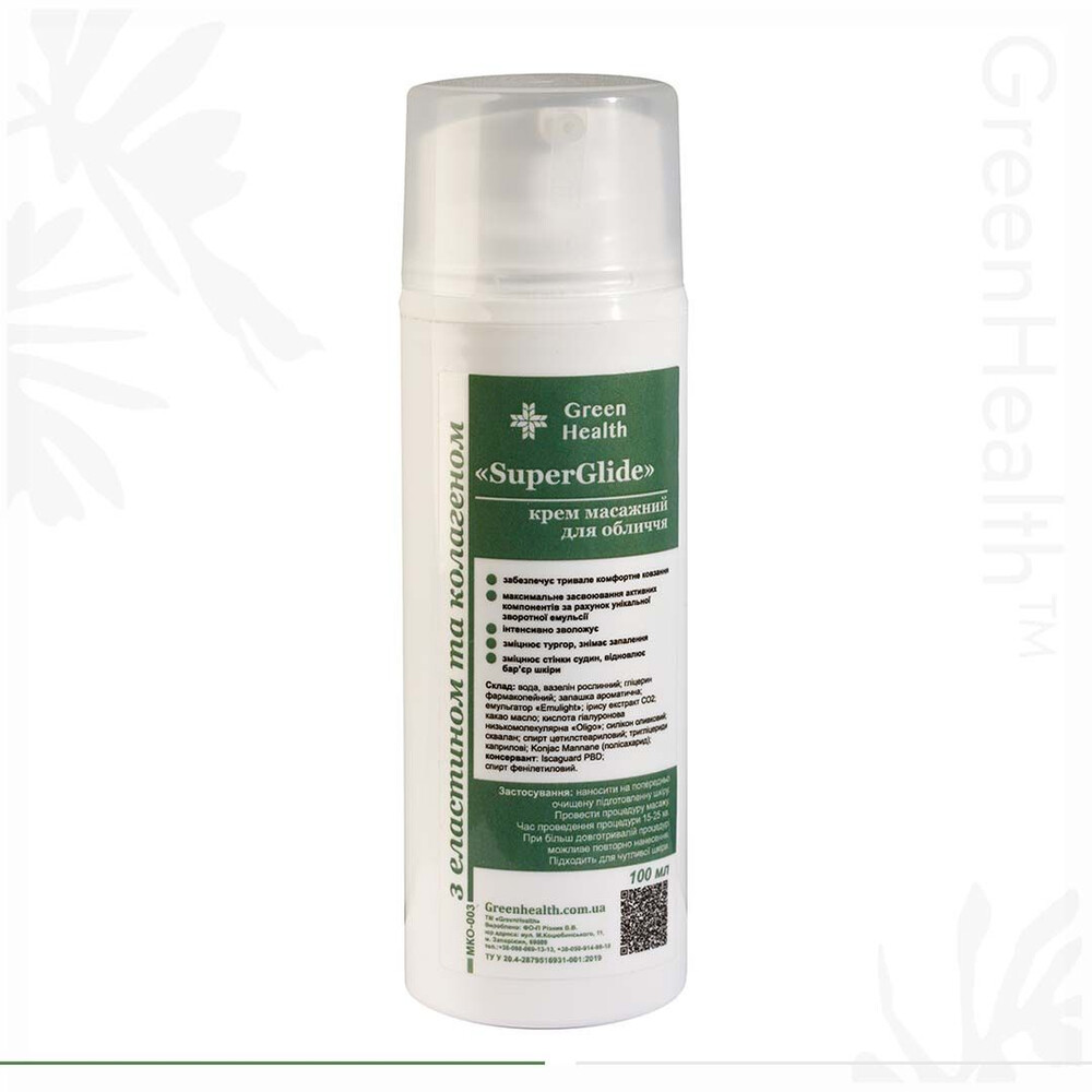 Крем массажный для лица "SuperGlide" с эластином и коллагеном Green Health МКО-003, 100 мл