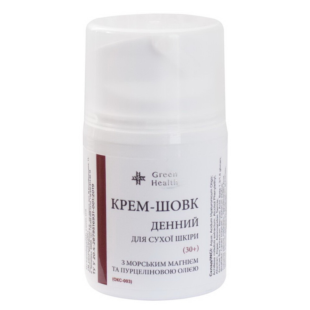 Крем-шелк дневной для сухой кожи с морским магнием и пурцелиновым маслом (30+) Green Health ОКС-003, 50 мл