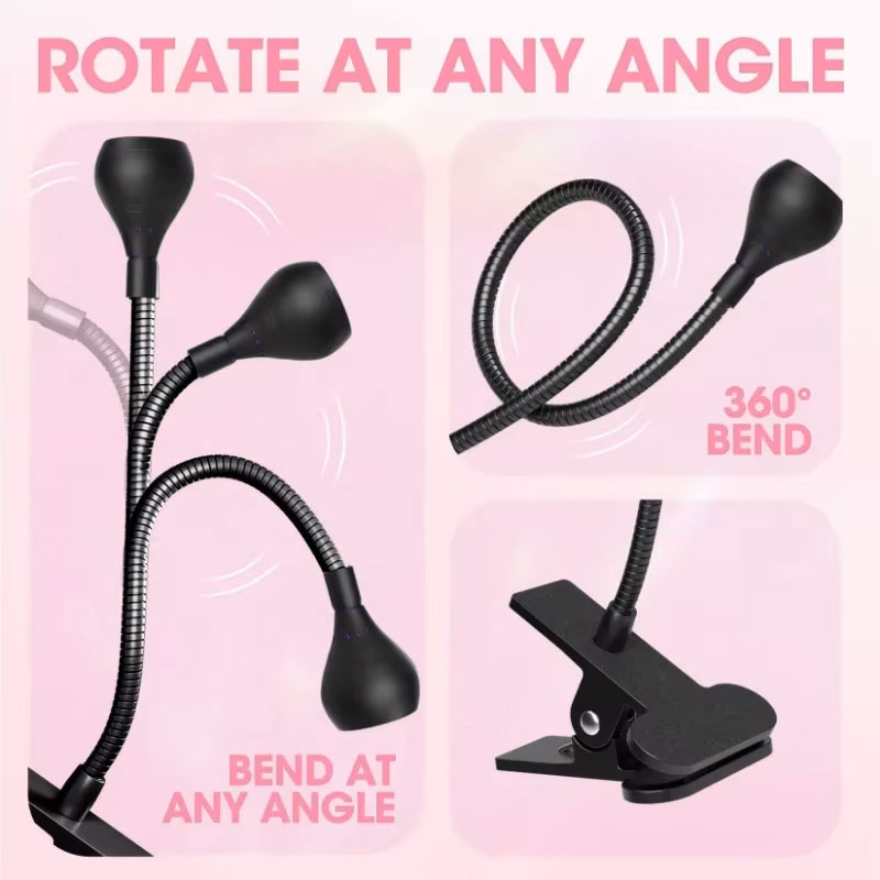 Компактная и удобная УФ-лампа с клипсой предназначена для профессионального и домашнего использования. Идеально подходит для маникюра, полимеризации УФ-геля.