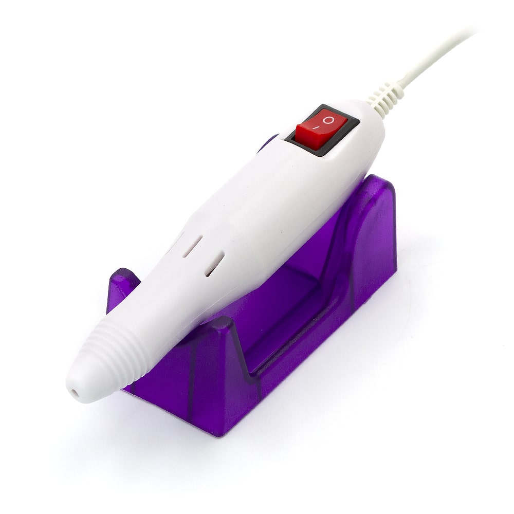 Ручка фрезера имеет удобную для работы форму, отлично лежит в руке, не выскальзывает. Она сделана из крепкого пластика, что обеспечивает легкость. Рука не устает в работе. Цвета ручек подобраны к цвету блока: серый и черный блоки комплектуются черными ручками, белый блок — белой ручкой. На корпусе предусмотрена кнопка включения I и выключения 0 ручки. Шнур сделан в виде телефонного провода (спиралью), растягивается до одного метра.