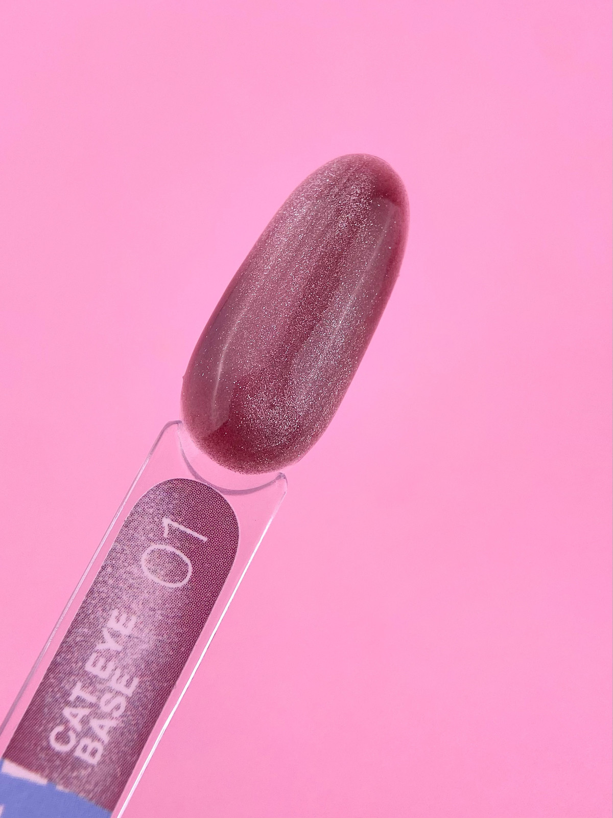 Cat Eye base №1 — это база с эффектом кошачий глаз. В составе продукта имеются маленькие металлические частицы, которые реагируют на действие магнита, перемещаясь в еще не заполимеризованном слое покрытия, которые обеспечивают в результате дизайн с волшебным отблеском.