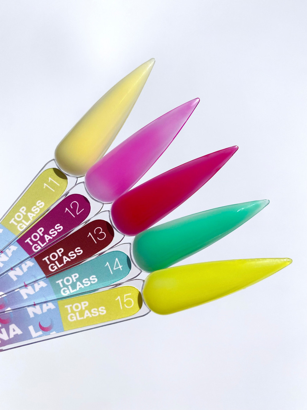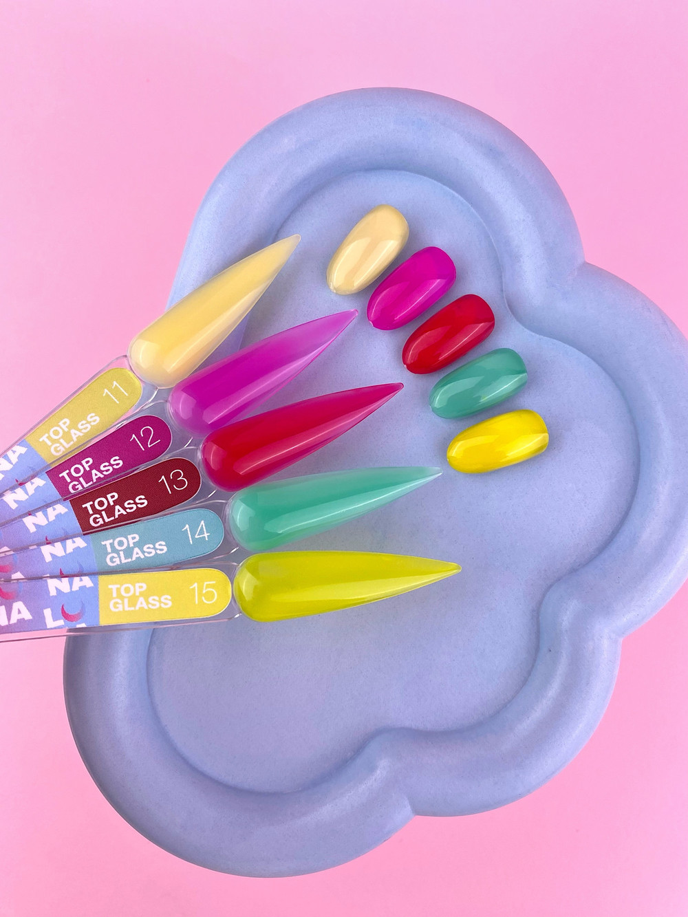 Top Glass – это цветной топ без липкого слоя, который держит блеск до 4-х недель. Топы Glass имеют большую палитру из самых трендовых оттенков на любой вкус.