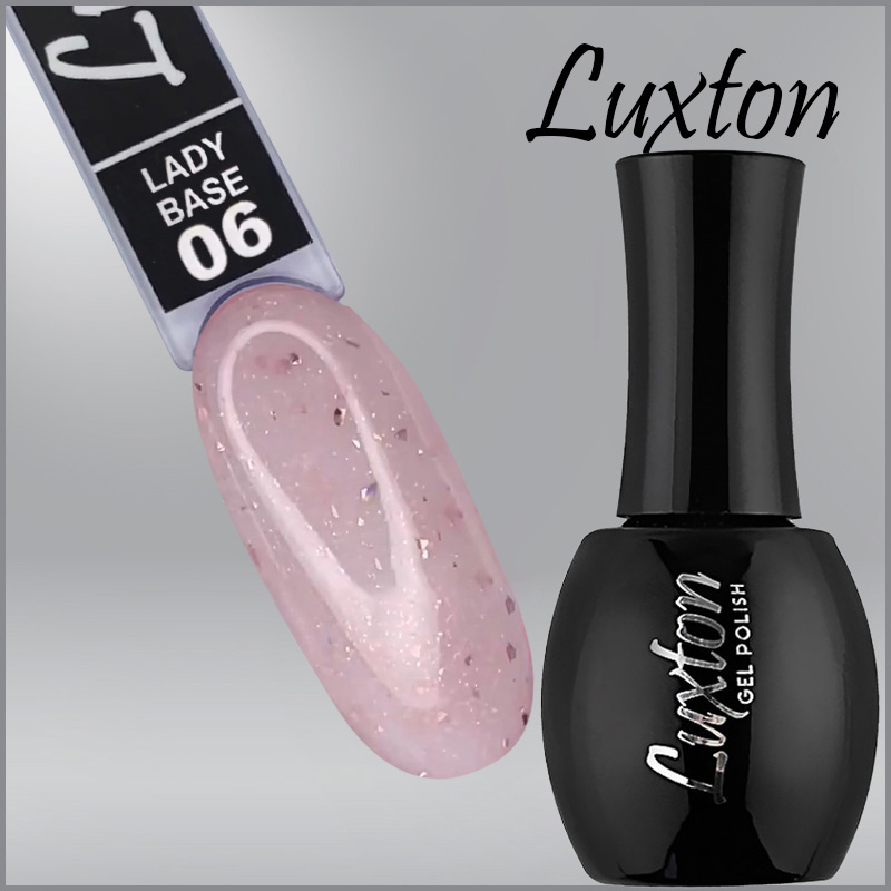 Камуфлирующая база LUXTON Lady Base №006 молочный с розовым шиммером и розовой поталью, 15 мл