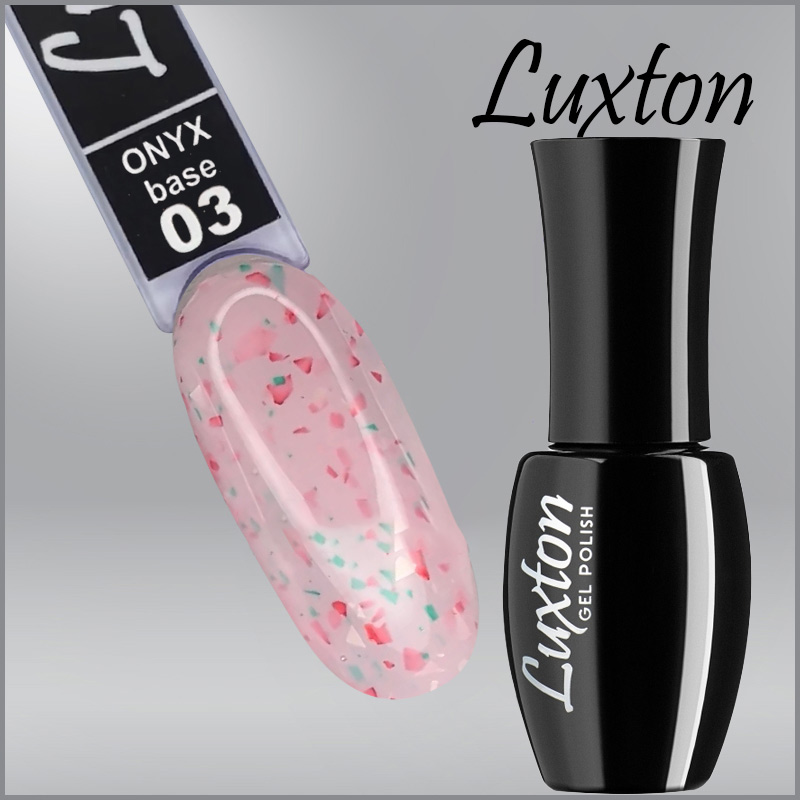 Купить Камуфлирующая база LUXTON Onyx Base №003 розовая с красно-зеленой поталью, 10 мл,, вы сможете в нашем интернет магазине limonad с доставкой по всей Украине в том числе и Киев, Днепр, Одесса, Харьков, Запорожье, Одесса, Львов и многие другие населенные пункты.
