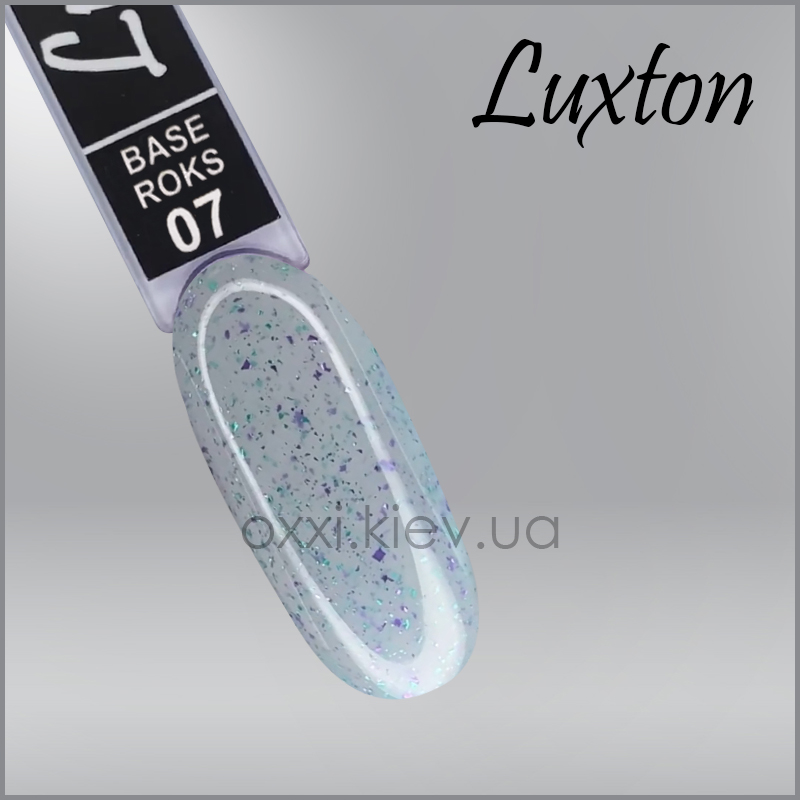 Купить Камуфлирующая база LUXTON Roks Base 15 мл, №7 серо-голубой с миксом бесток и слюды бирюзового и фиолетового цвета,, вы сможете в нашем интернет магазине limonad с доставкой по всей Украине в том числе и Киев, Днепр, Одесса, Харьков, Запорожье, Одесса, Львов и многие другие населенные пункты.