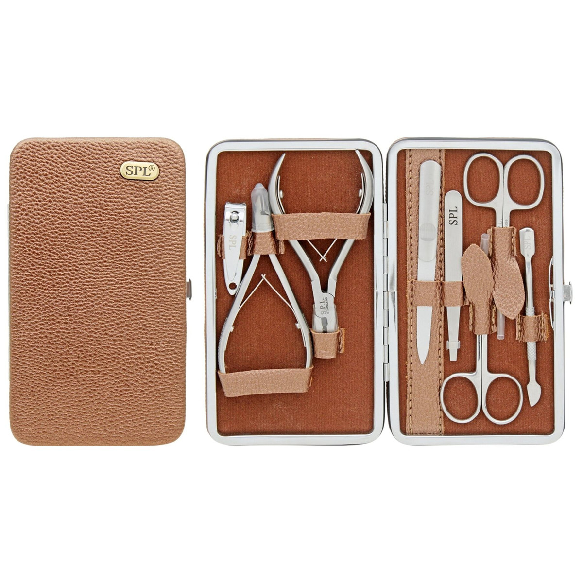 Немецкий бренд SPL – известный производитель высококачественных маникюрных девайсов, обеспечивающих практическую и комфортную эксплуатацию для своих владельцев. Поэтому, если вы хотите приобрести маникюрный набор, обратите внимание на приведенную модель, состоящую из 8 предметов, которые хранятся в элегантном бронзовом чехле. С помощью этих инструментов вы сможете выполнить комплексную обработку ногтевых пластинок на руках и ногах, а также поработать с формой бровей как приятный бонус.