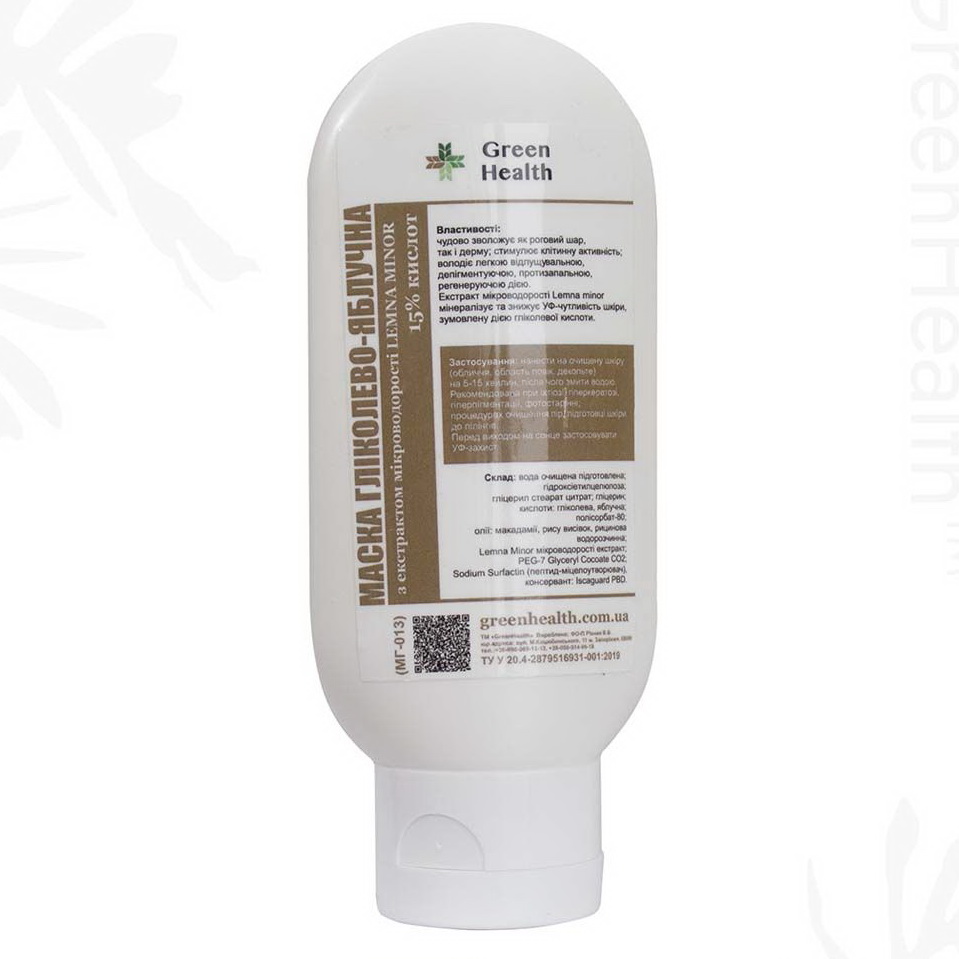 Купить Маска гликолево-яблочная с экстрактом микроводоросли Lemna Minor (15% кислот, рН3,8) Green Health МГ-013, 250 мл,, вы сможете в нашем интернет магазине limonad с доставкой по всей Украине в том числе и Киев, Днепр, Одесса, Харьков, Запорожье, Одесса, Львов и многие другие населенные пункты.