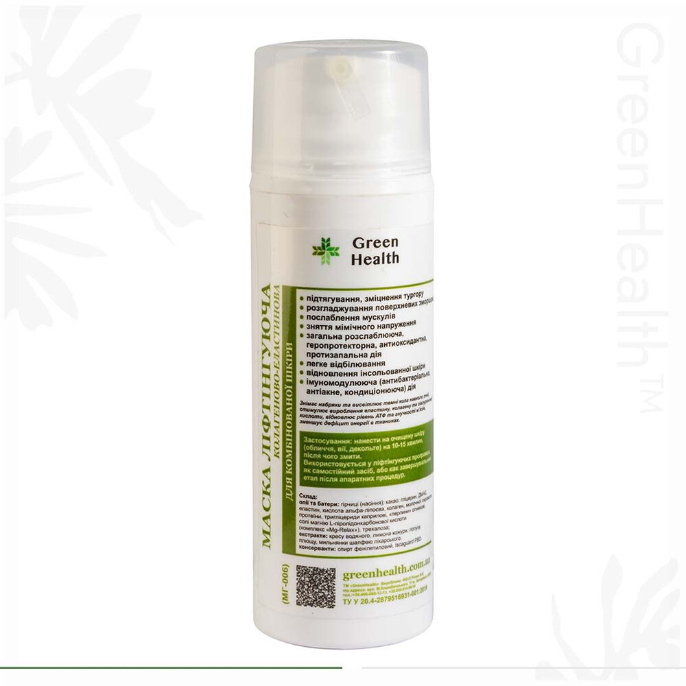 Купить Маска лифтингирующая, коллагеново-эластиновая для комбинированной кожи лица Green Health МГ-006, 250 мл,, вы сможете в нашем интернет магазине limonad с доставкой по всей Украине в том числе и Киев, Днепр, Одесса, Харьков, Запорожье, Одесса, Львов и многие другие населенные пункты.