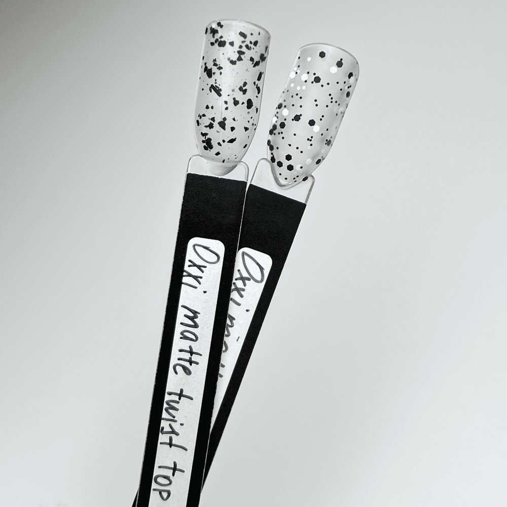 Матовый топ Oxxi Professional Twist Matte Top предназначен для гель-лака и отличается от традиционных вариантов рядом интересных особенностей. Во-первых, его текстура представляет собой прозрачную основу, дополненную черными разноформатными вкраплениями. Это необычное решение позволяет разнообразить декоративный маникюр и придать ему изюминку. Второй особенностью финиша является его матовость - ногти выглядят очень стильно! Отсутствие липкости после полимеризации - третье важное отличие. Нанесли, просушили и маникюр готов! Консистенция финиша очень приятная и комфортная, наносится без растеканий, сушится быстро и полноценно. Полимеризация: 30-60 секунд в LED-лампе, 2 мин. в UV 36 Вт.
