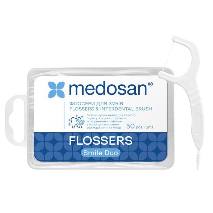 Купить Флоссеры для зубов Medosan Smile Duo Flossers&Interdental brush ,, вы сможете в нашем интернет магазине limonad с доставкой по всей Украине в том числе и Киев, Днепр, Одесса, Харьков, Запорожье, Одесса, Львов и многие другие населенные пункты.