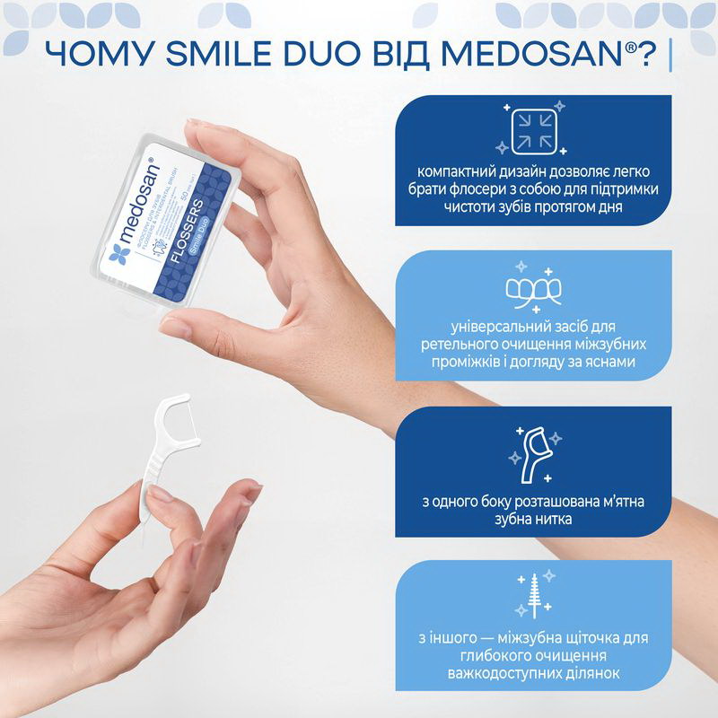 Флоссеры для зубов Medosan Smile Duo Flossers&Interdental brush
