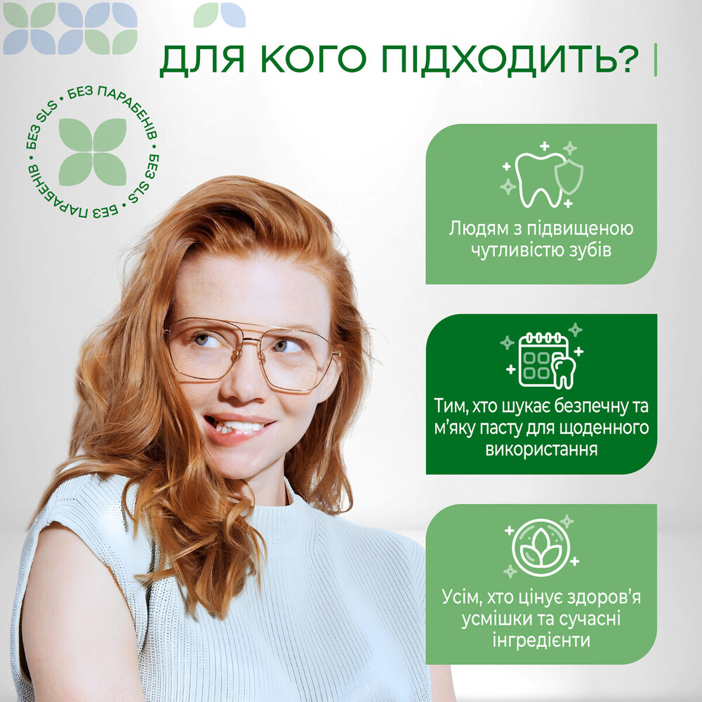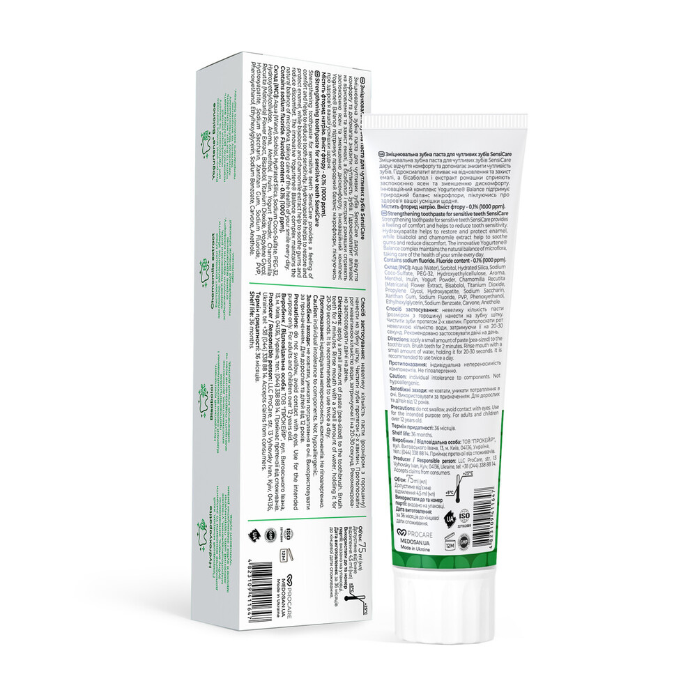 Укрепляющая зубная паста для чувствительных зубов SensiCare дарит ощущение комфорта и помогает снизить чувствительность зубов. Гидроксиапатит оказывает влияние на восстановление и защиту эмали, а бисаболол и экстракт ромашки способствуют успокоению десен и уменьшению дискомфорта. Инновационный комплекс Yogurtene® Balance поддерживает естественный баланс микрофлоры, заботясь о здоровье вашей улыбки каждый день.
