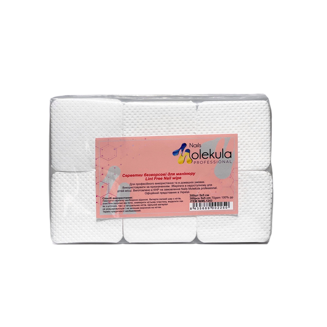 Салфетки безворсовые Molekula Lint Free Nail wipe (пачка 300 шт)
