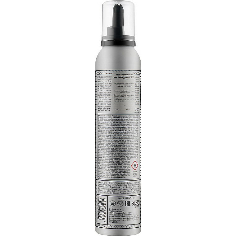 Аква (WATER / EAU), BUTANE, ISOBUTANE, PROPANE, MYRISTYL ALCOHOL, CETRIMONIUM CHLORIDE, LAURETH-4, PHENOXYETHANOL, AMODIMETHICONE, PARFUM (FRAGRANCE), GUAR HYDROXYPROPYLTRIMONIUM ACID, ETHYLHEXYLGLYCERIN, POLYAMINO SUGAR CONDENSATE, PERSEA GRATISSIMA OIL (AVOCADO (PERSEA GRATISSIMA) OIL).