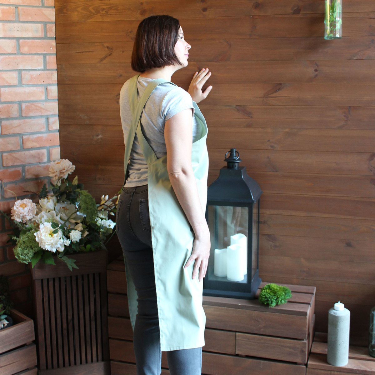 Фартук со шлейками крест-накрест фисташка Nibano 2053.PS