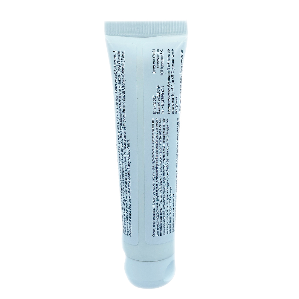 Благодаря активной формуле средство имеет легкую консистенцию быстро поглощаемой эмульсии, не оставляя белых разводов. Формула крема содержит биофлавоноиды растительных масел и комплекс солнцезащитных фильтров. Обеспечивает интенсивное пролонгированное увлажняющее действие. Способствует укреплению защитных свойств кожного покрова. Крем дарит чувство комфорта, смягчает, придает коже бархатистость, здоровый и ухоженный вид. Состав: вода очищенная, глицерин, сладкий миндаль, масло гидрогенизированное, экстракт подсолнечника, масло авокадо водорастворимое, дибутил адипат, диэтиламиногидроксибензоилгексилбензоат, этилгексил-метоксициннамат, лаурет-2, Цитрат зон, Бис-этилгексилоксилоксифенол Метоксифенилтриазин, Лаурилглюкозид, Триэтаноламин , Полиакрилат натрия, Алоэ вера Гель, Масло ши, Календулы экстракт, Аскорбилфосфат магния, этилгексилглицерин, бензиловый спирт, парфюм.