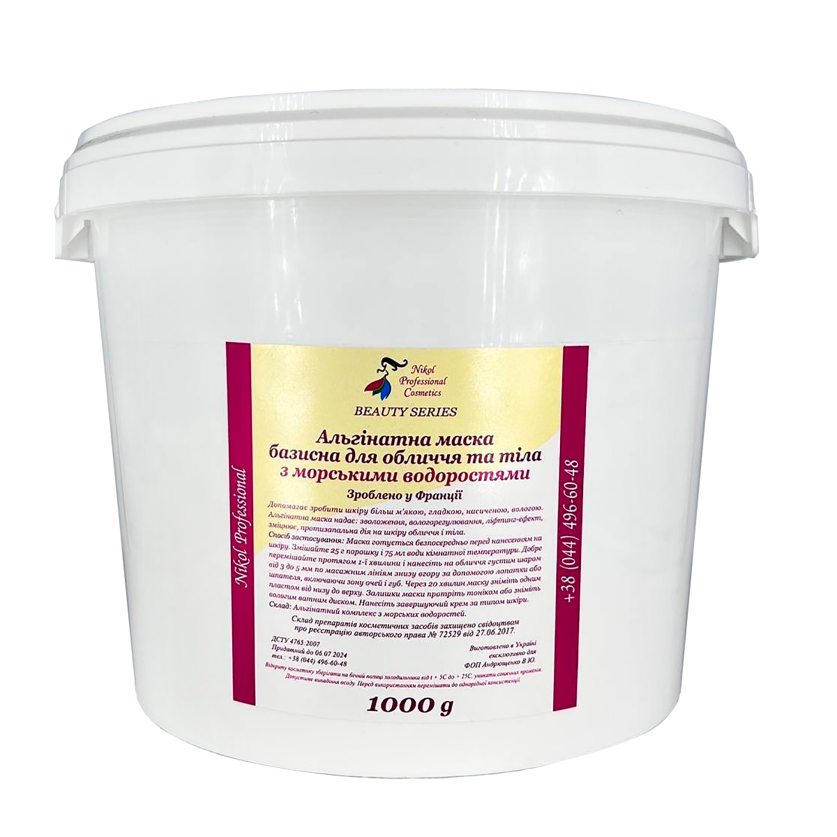 Альгинатная маска базовая для лица и тела с морскими водорослями Nikol Professional Cosmetics, 1000 г