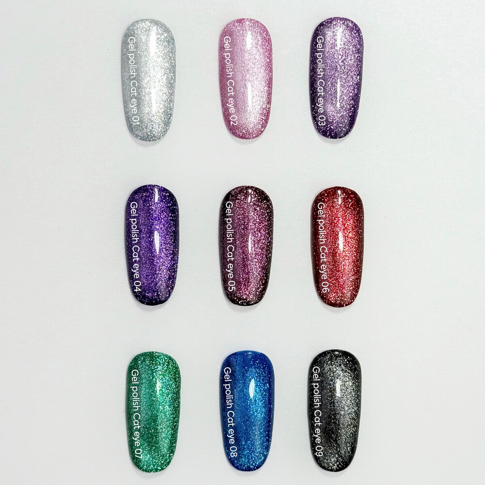 NAILSOFTHEDAY Gel Polish Cat Eye – это очень стильное сочетание глубокого эффекта кошачьего глаза, насыщенных пигментов и деликатного светоотражающего блеска. Благодаря мелкой талии оттенки выглядят особенно выразительно и создают многомерное сияние под любым освещением. Это идеальная коллекция для любителей создавать праздничные, эффектные и заметные дизайны. Новый уровень Cat Eye уже здесь.