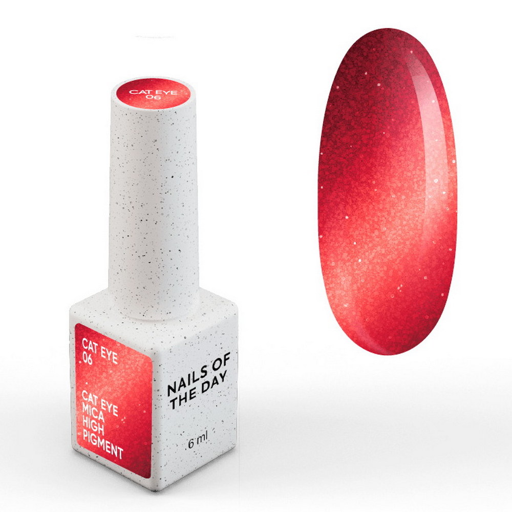 NailsOfTheDay Gel Polish Cat Eye 06 красный гель-лак кошачий глаз с мелкой талью с легким светоотражающим эффектом, перекрывающийся в один слой, 6 мл